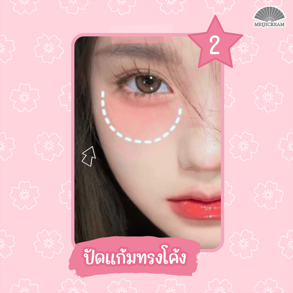 ทริคที่2 ปัดแก้มบริเวณใต้ตาเป็นทรงโค้ง