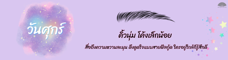 วันศุกร์ : คิ้วนุ่ม โค้งเล็กน้อย สื่อถึงความหวานละมุน ดึงดูดใจแบบสายฟีลกู้ด ใครอยู่ใกล้ก็รู้สึกดี