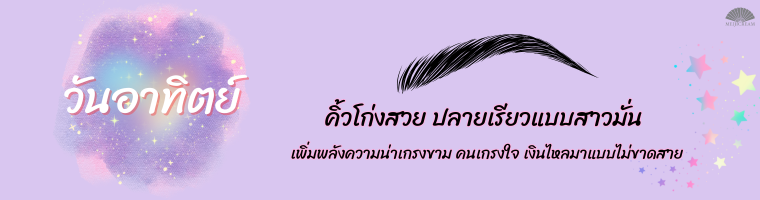 วันอาทิตย์ : คิ้วโก่งสวย ปลายเรียวแบบสาวมั่น เพิ่มพลังความน่าเกรงขาม คนเกรงใจ เงินไหลมาแบบไม่ขาดสาย