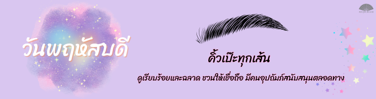 วันพฤหัสบดี : คิ้วเป๊ะทุกเส้น ดูเรียบร้อยและฉลาด ชวนให้เชื่อถือ มีคนอุปถัมภ์สนับสนุนตลอดทาง