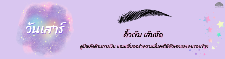 วันเสาร์ : คิ้วเข้ม เส้นชัด ดูมีพลังด้านการเงิน แถมเพิ่มออร่าความมั่นคงให้ตัวเองและคนรอบข้าง