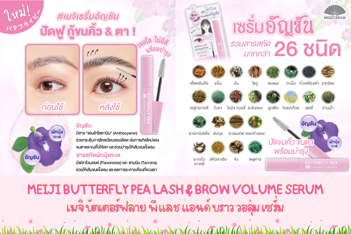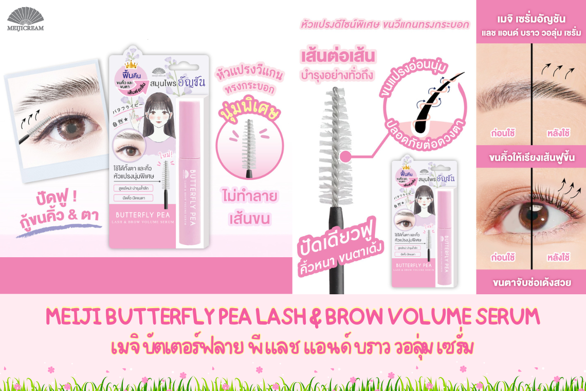2. MEIJI BUTTERFLY PEA LASH & BROW VOLUME SERUM – เซรั่มบำรุงขนตาและคิ้วที่สาว ๆ รอคอย เพิ่มวอลุ่มเส้นขนให้ดูหนาเด้งยาวแบบไม่ต้องพึ่งมาสคาร่า