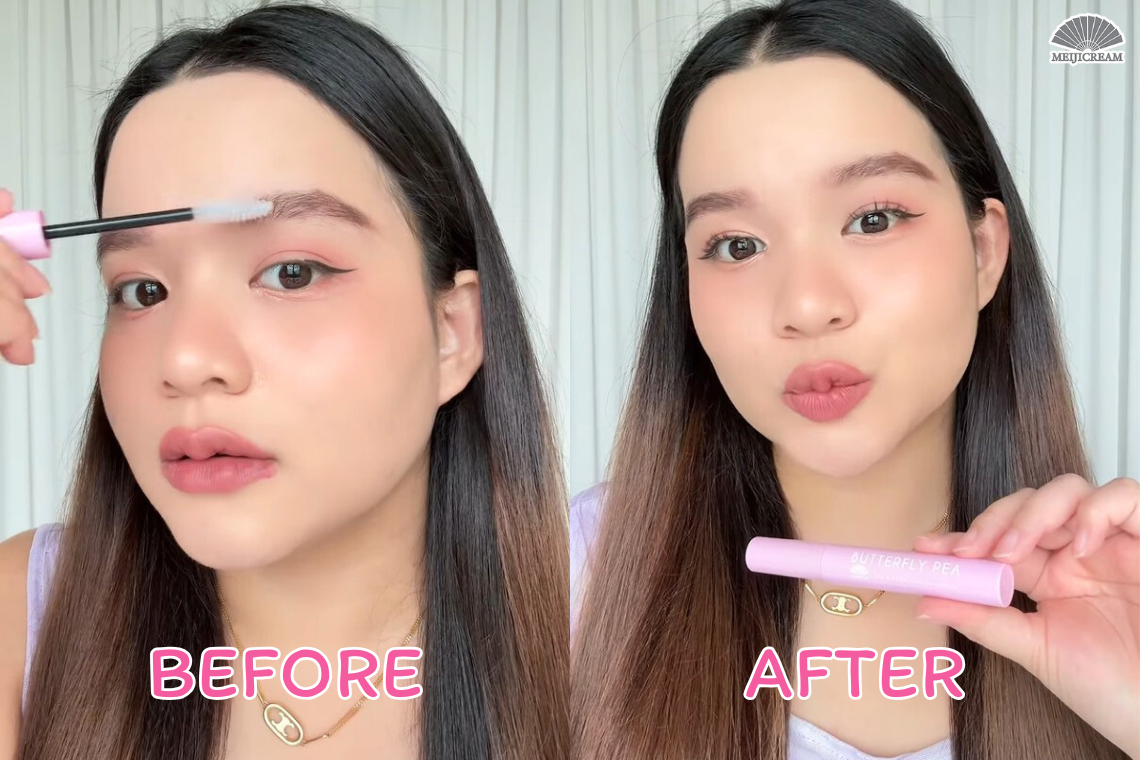 สำหรับขนคิ้วและขนตา คุณบีเลือกใช้ MEIJI BUTTERFLY PEA LASH & BROW VOLUME SERUM ที่มีหัวแปรงฟูนุ่ม ปัดได้ทั่วถึงทุกเส้นขน บำรุงจากรากถึงปลาย ด้วยอัญชัน รากชะเอม และสมุนไพรเกาหลีเข้มข้นกว่า 26 ชนิด เสริมให้ขนคิ้วอุย ฟู ขนตาเด้ง แข็งแรง ไม่หลุดร่วงง่าย ขนตาเรียงเส้นสวย คิ้วดูเต็มขึ้นอย่างเป็นธรรมชาติ